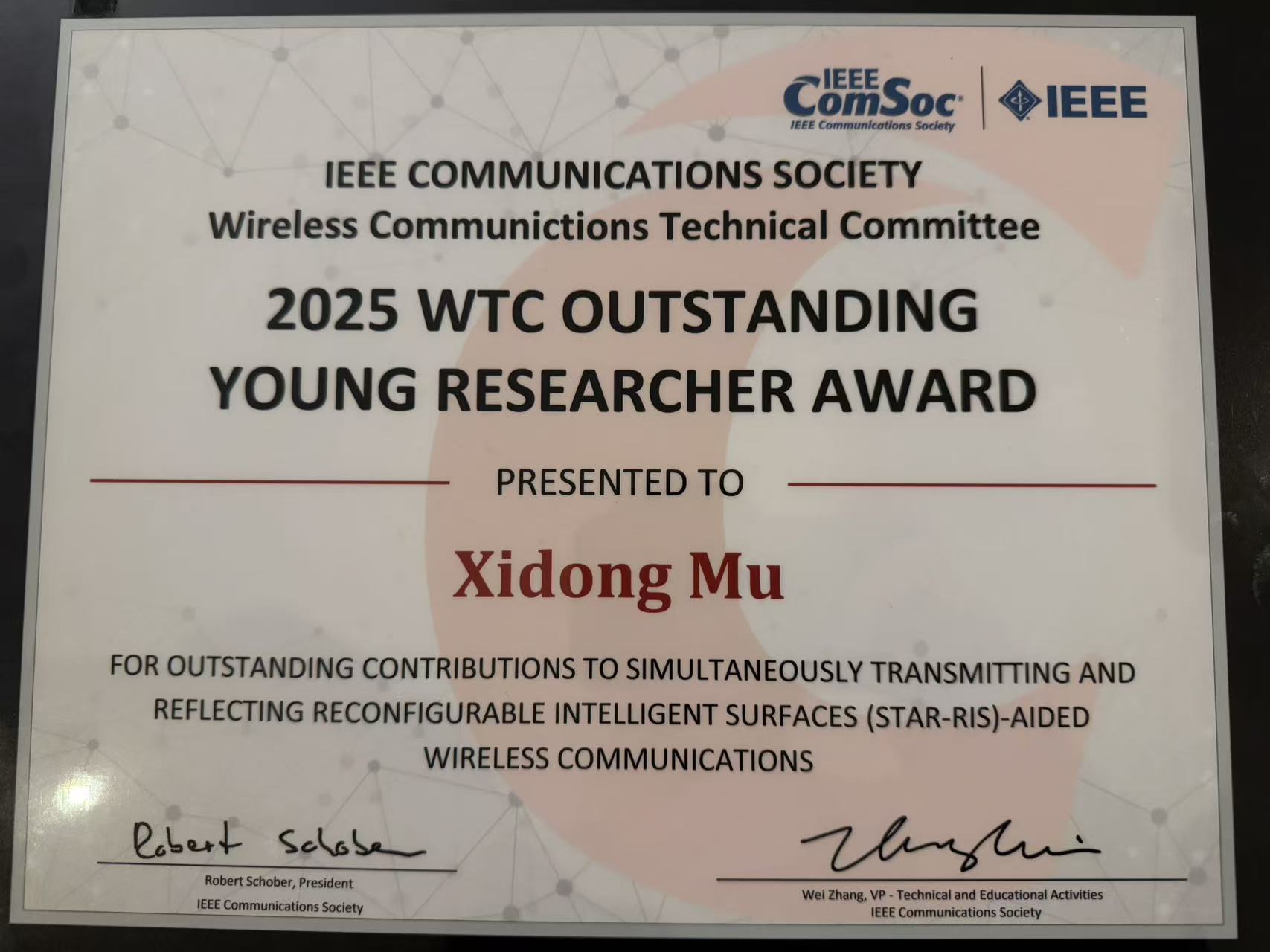 [2025-10] I am awarded the 2025 IEEE ComSoc WTC Outstanding Young Researcher (OYR) Award. [Certificate] [Link]